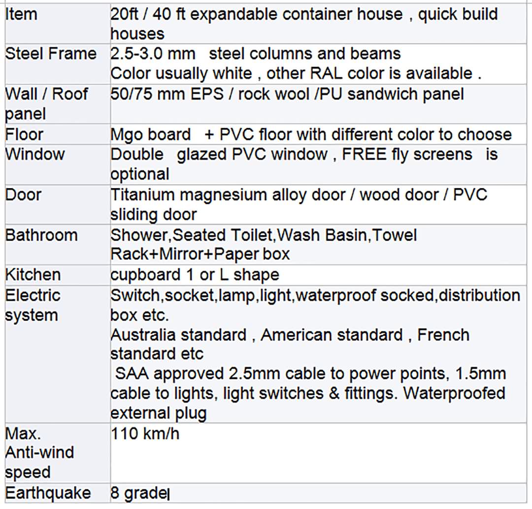 Expandable container house can be moved frequently, more importantly, large space for mobile living. It is done after expanded, the size is about37 of our popular modular house, square meters, which is about2.5 which is made of welded light steel times of the closed one. With frame and insulated sandwich windows and door designed and panels. We offer different solutions: equipped rightly, it is a widely used tor for clients. It can be empty inside, holiday house, mobile clinic, site or with one bathroom or with office and camp accommodation.partition walls for bedrooms. For one 40 ft container home. it can load 2 units of our expandable container house. Cheap cost to build a container home